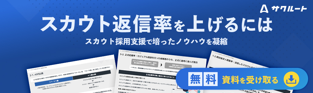 数多くの企業のダイレクトリクルーティング支援を行ってきたサクルートのノウハウを詰め込んだ「スカウト返信率を上げるには」資料を無料で公開中です。